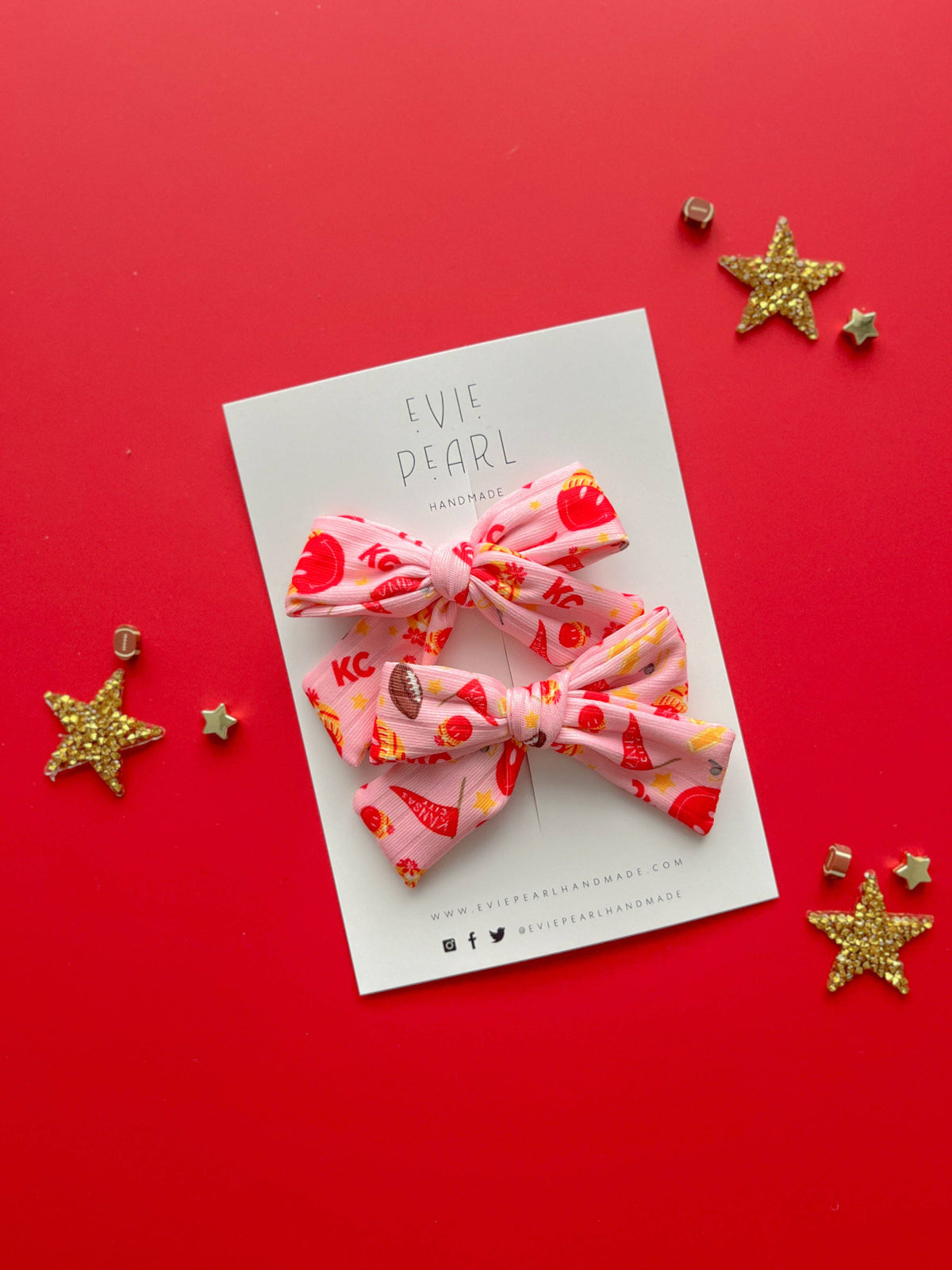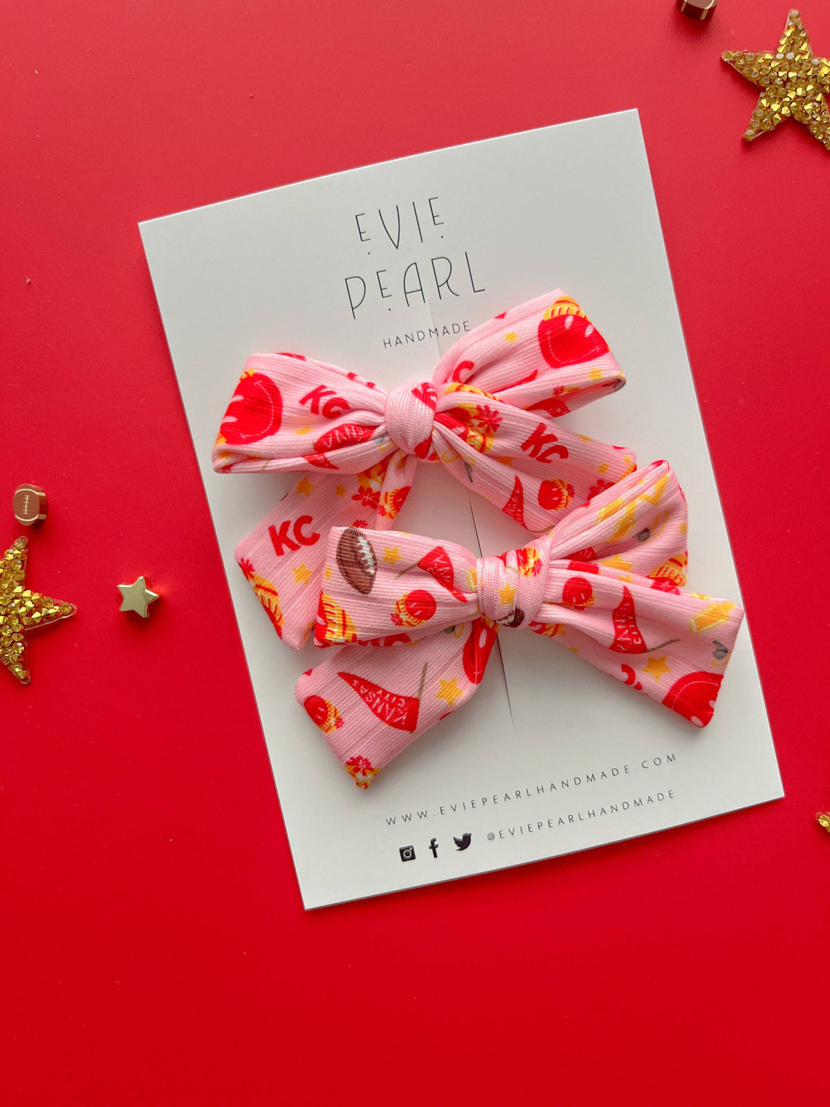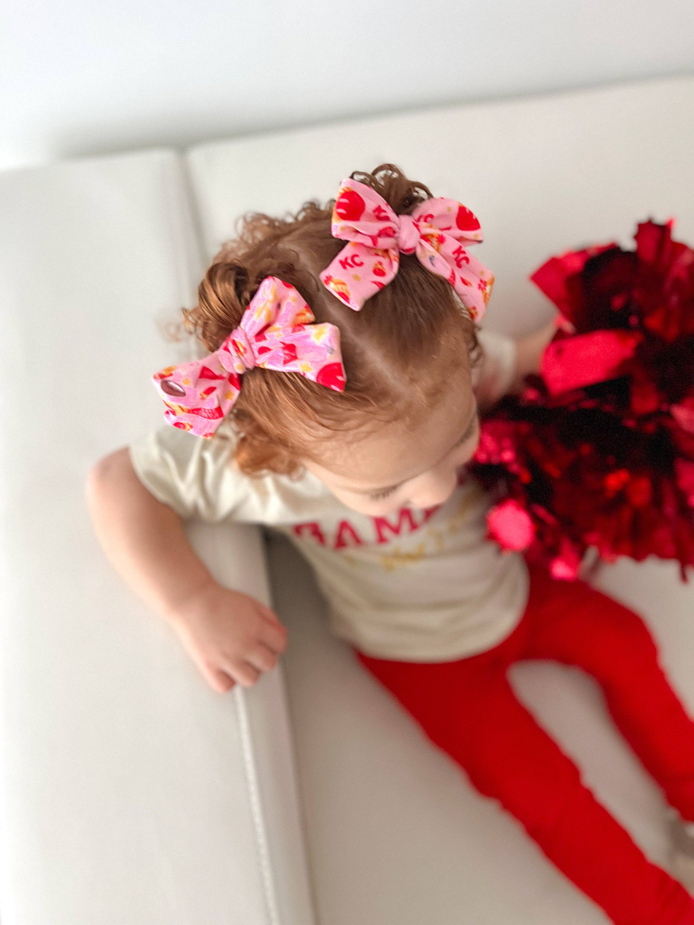 Medium Pigtails: 3x4 inches. Comes with 2 bows on large Alligator clips