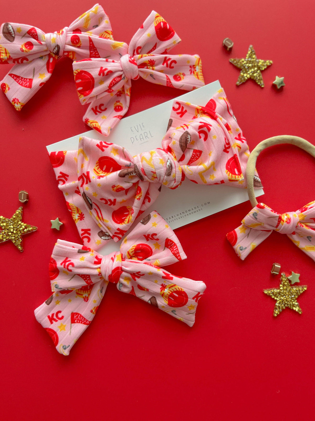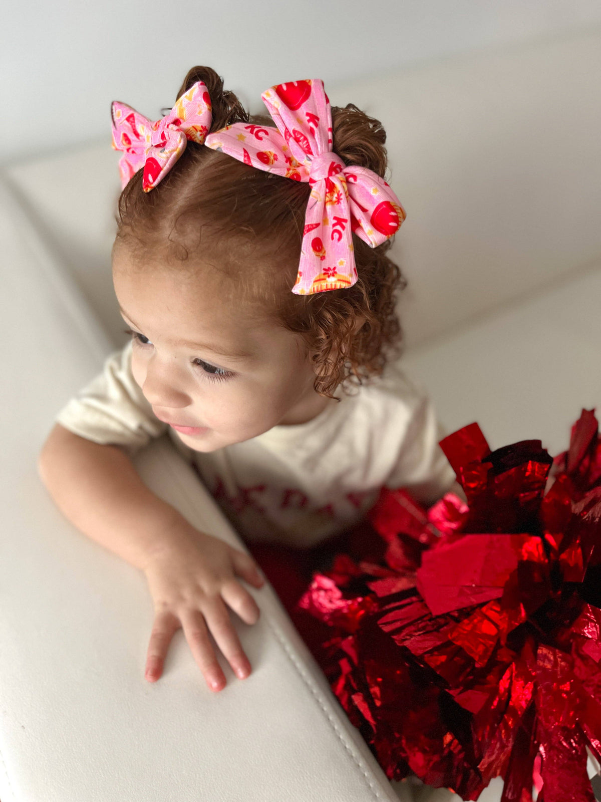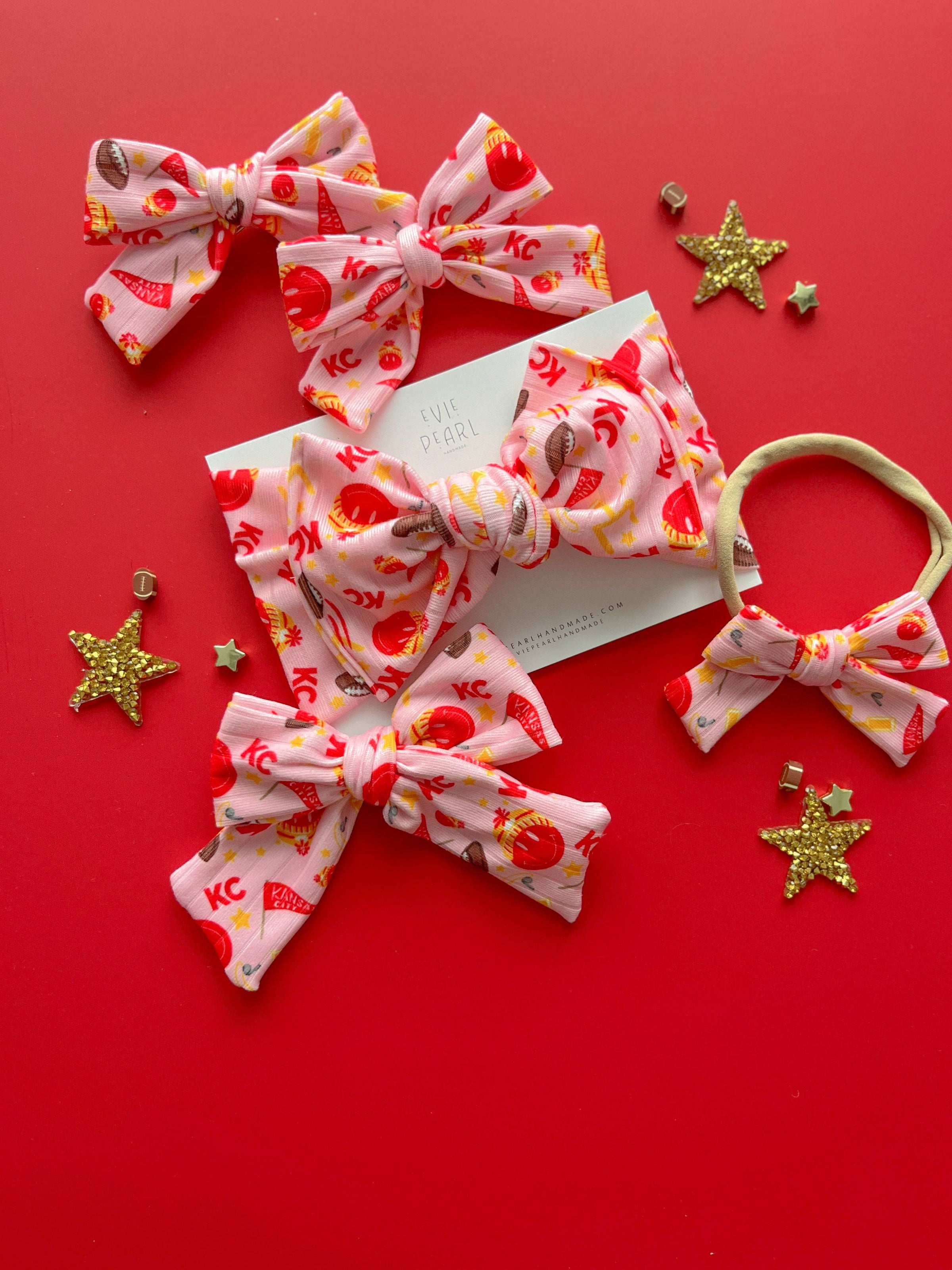 Medium Pigtails: 3x4 inches. Comes with 2 bows on large Alligator clips