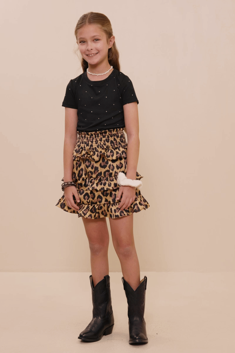 Our Smocked Waist Tiered Leopard Skirt Features: * Animal Print Fabric * Smocked Waist * Shorts Lining