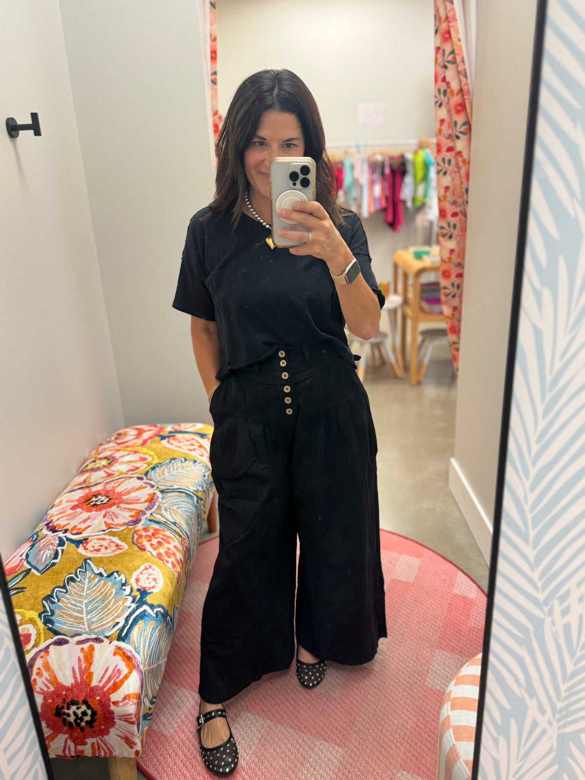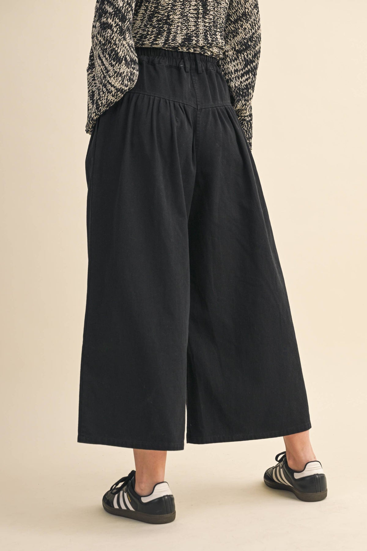 LAIDES! The cutest COTTON TWILL HIGH WAIST CROPPED WIDE LEG PANTS -MULTI BUTTON CLOSURE -PLEATED DETAILS - ELASTIC WAIST