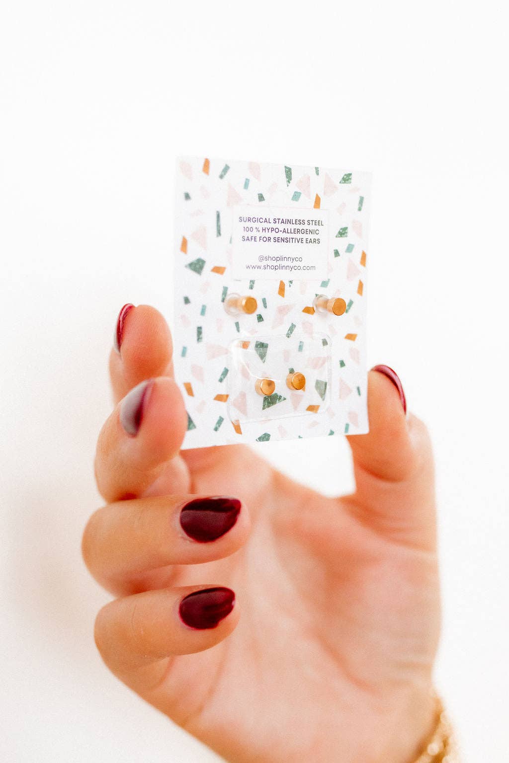 LINNY CO jewelry is safe for sensitive ears, light weight and made to last. Made from 100% surgical-grade stainless steel, LINNY CO is always copper and nickel free.