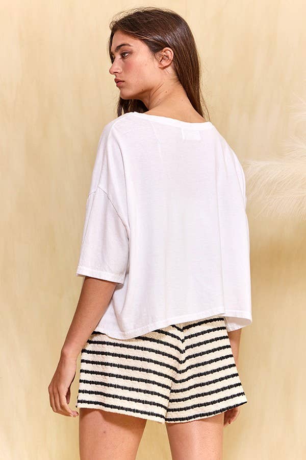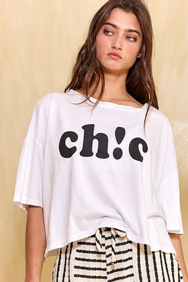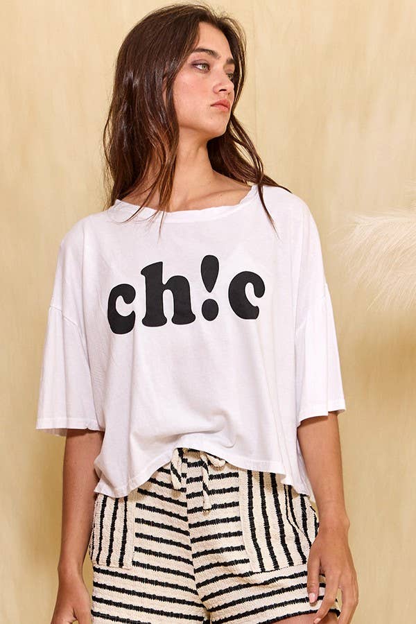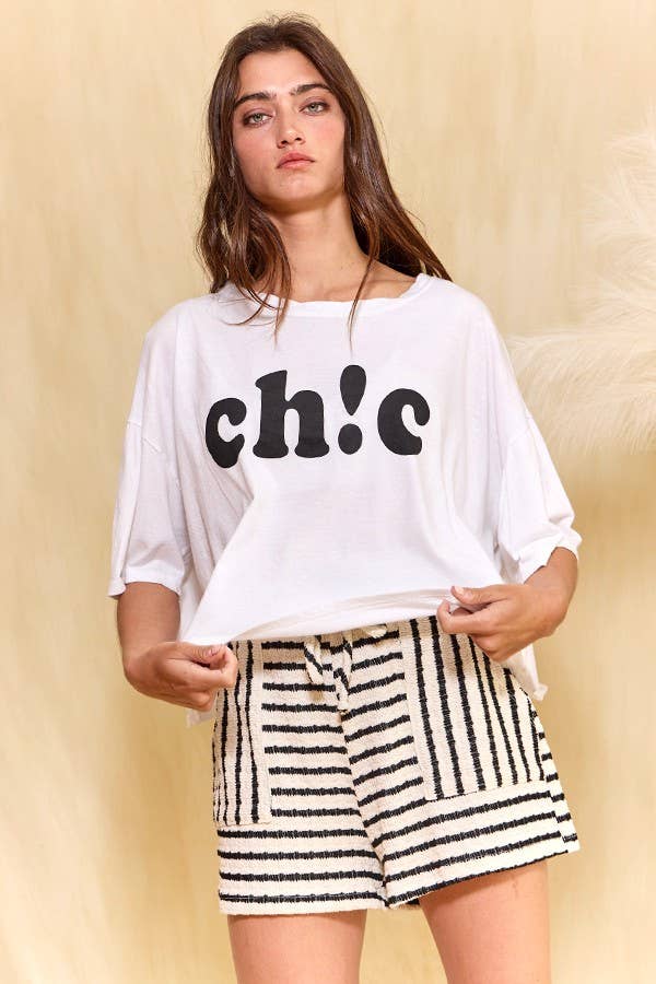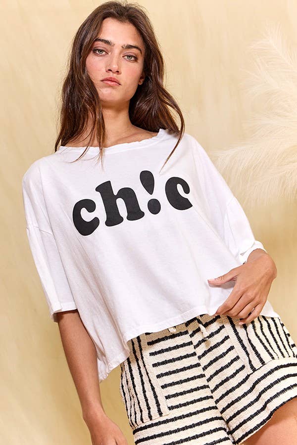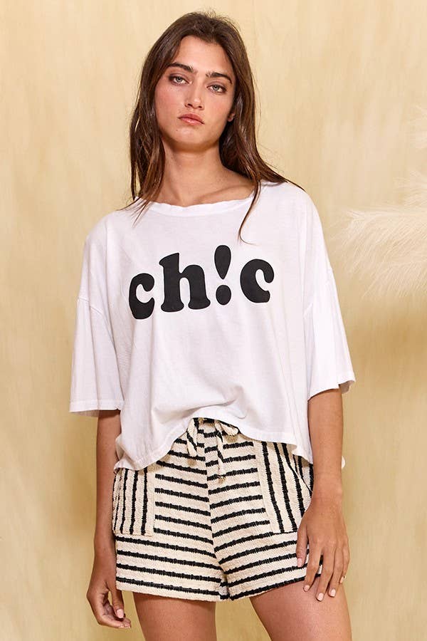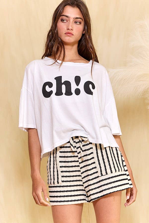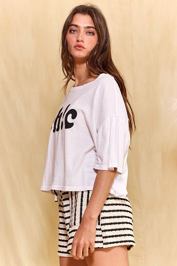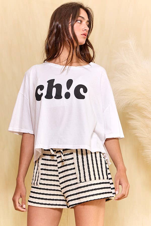 'Chic' Print Boxy Crop T-shirt Top - Matching bottom. Dropped shoulders for a slouchy fit - Short sleeves - Loose fit